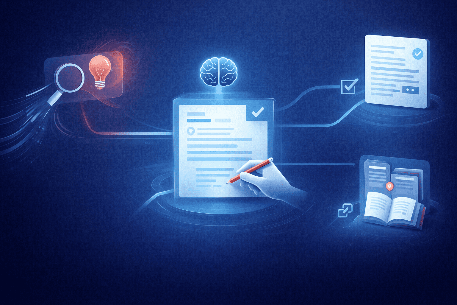 - Revisão humana (coerência, precisão, tom, duplicidade)