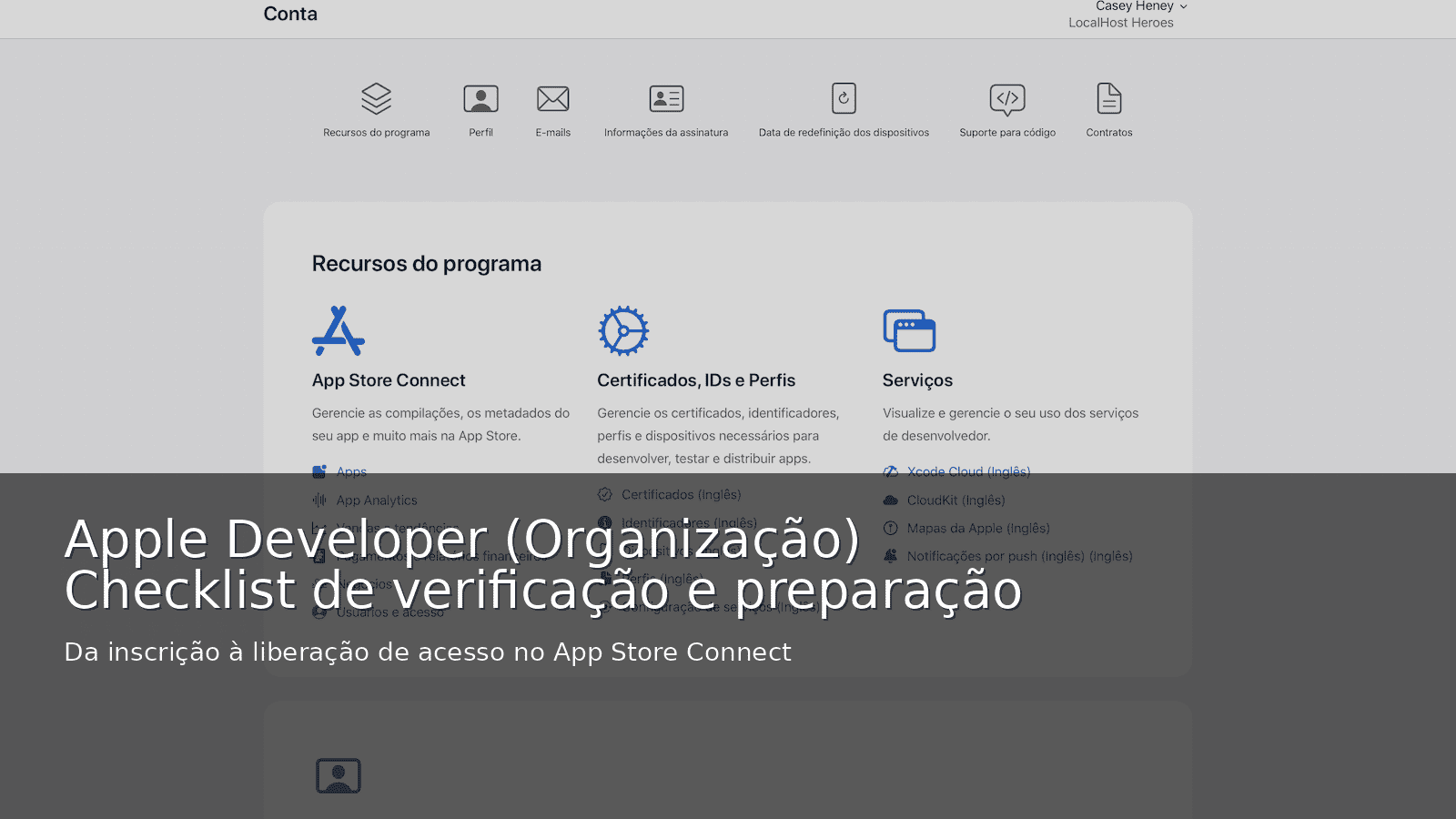 Nossas últimas novidadesVerificação da conta Apple Developer (Organização) e preparação do App Store Connect